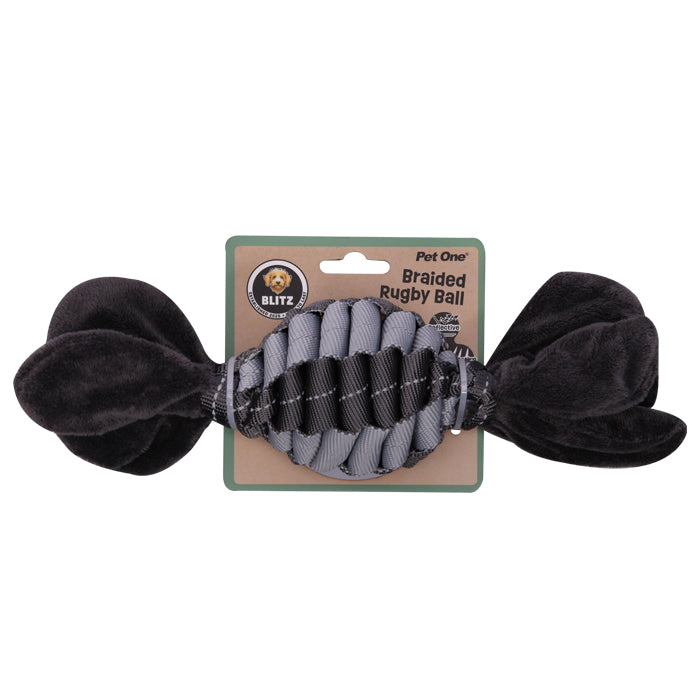 Dog Toy Blitz Braided Rugby Ball Grey L